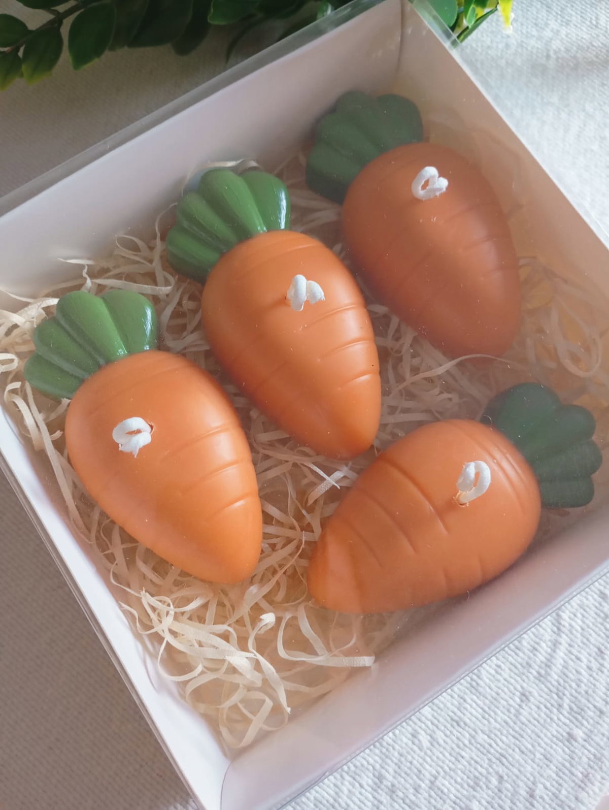 VELAS AROMATICAS DE CERA DE SOJA, MODELO ZANAHORIA, AROMA NARANJA Y CANELA.
