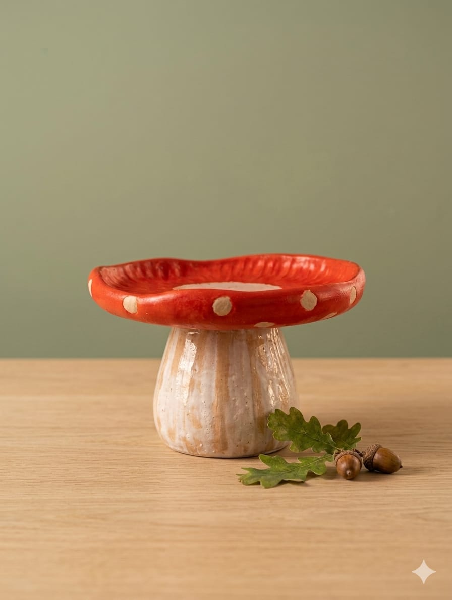 OBJETO ARTESANAL DE RESINA CERAMICA, MODELO HONGO, DE 15CM DE DIAMETRO POR 10.5 CM DE ALTO.