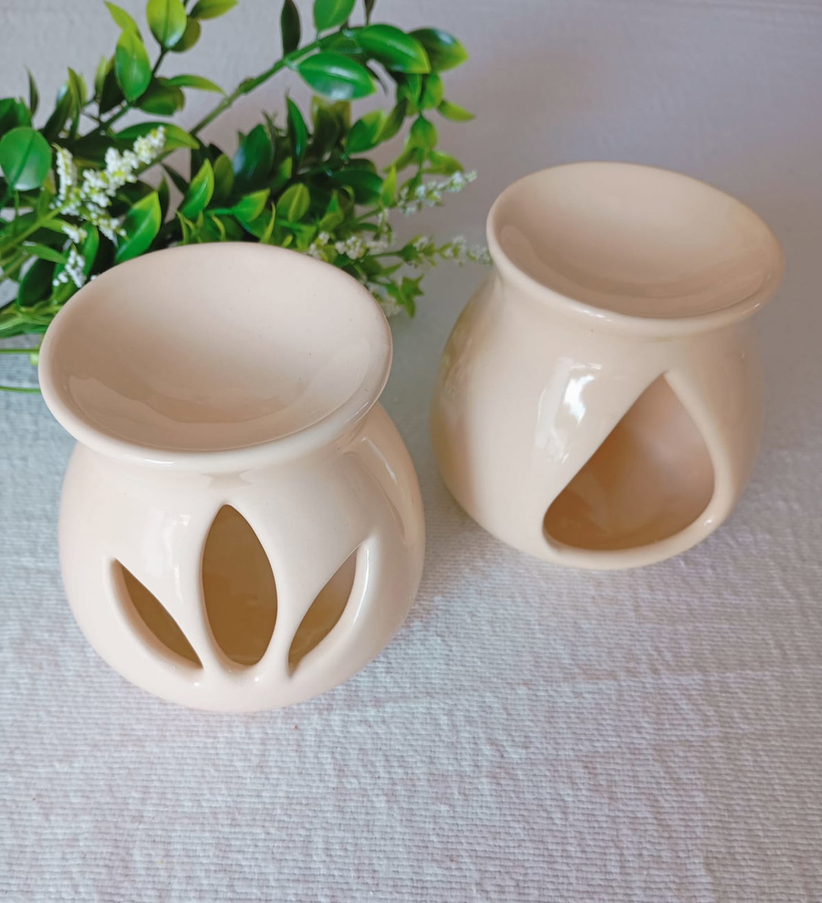 HORNITO DE CERAMICA TAMAÑO GRANDE, MODELO 3 HOJAS COLOR BEIGE.