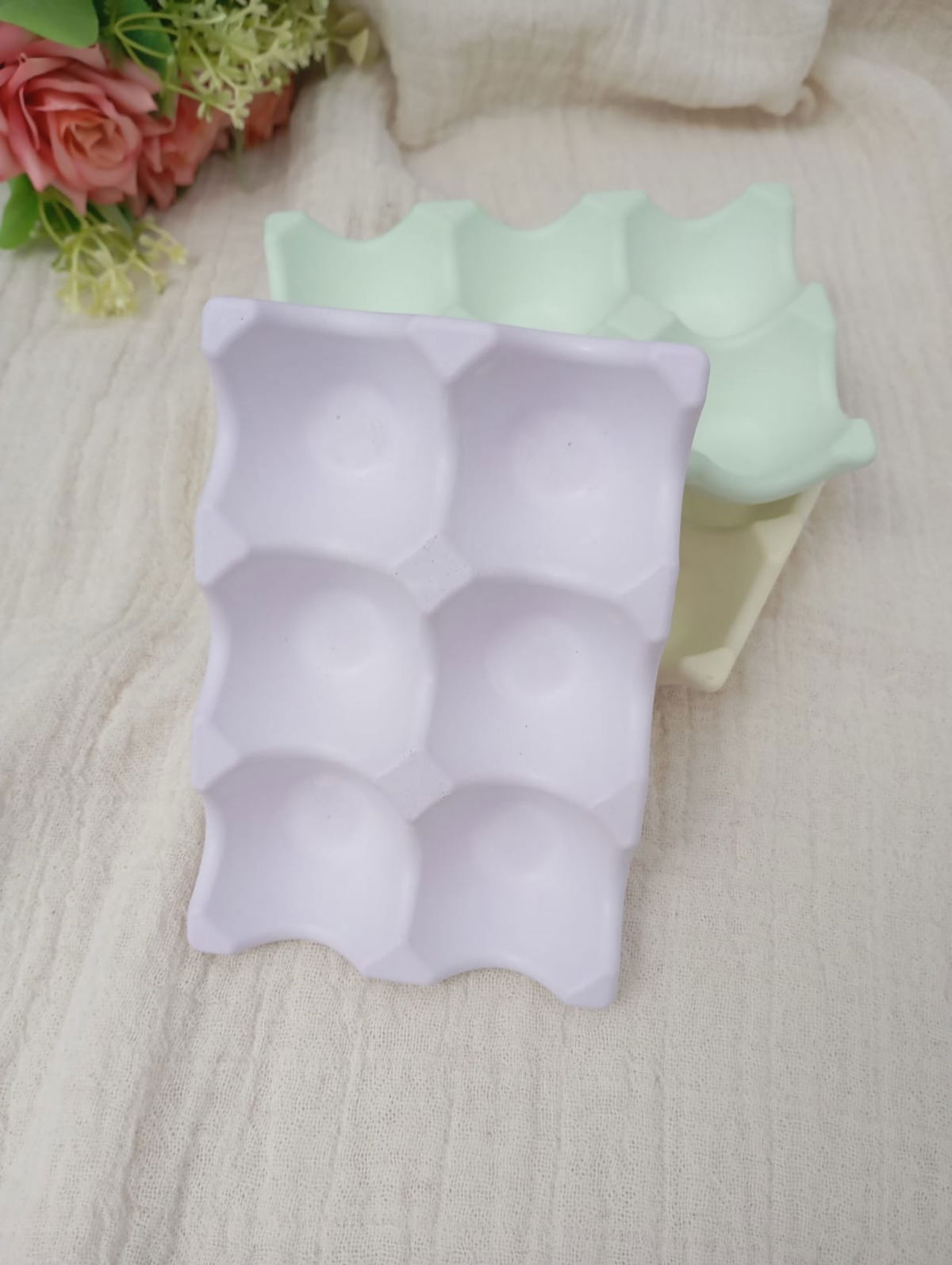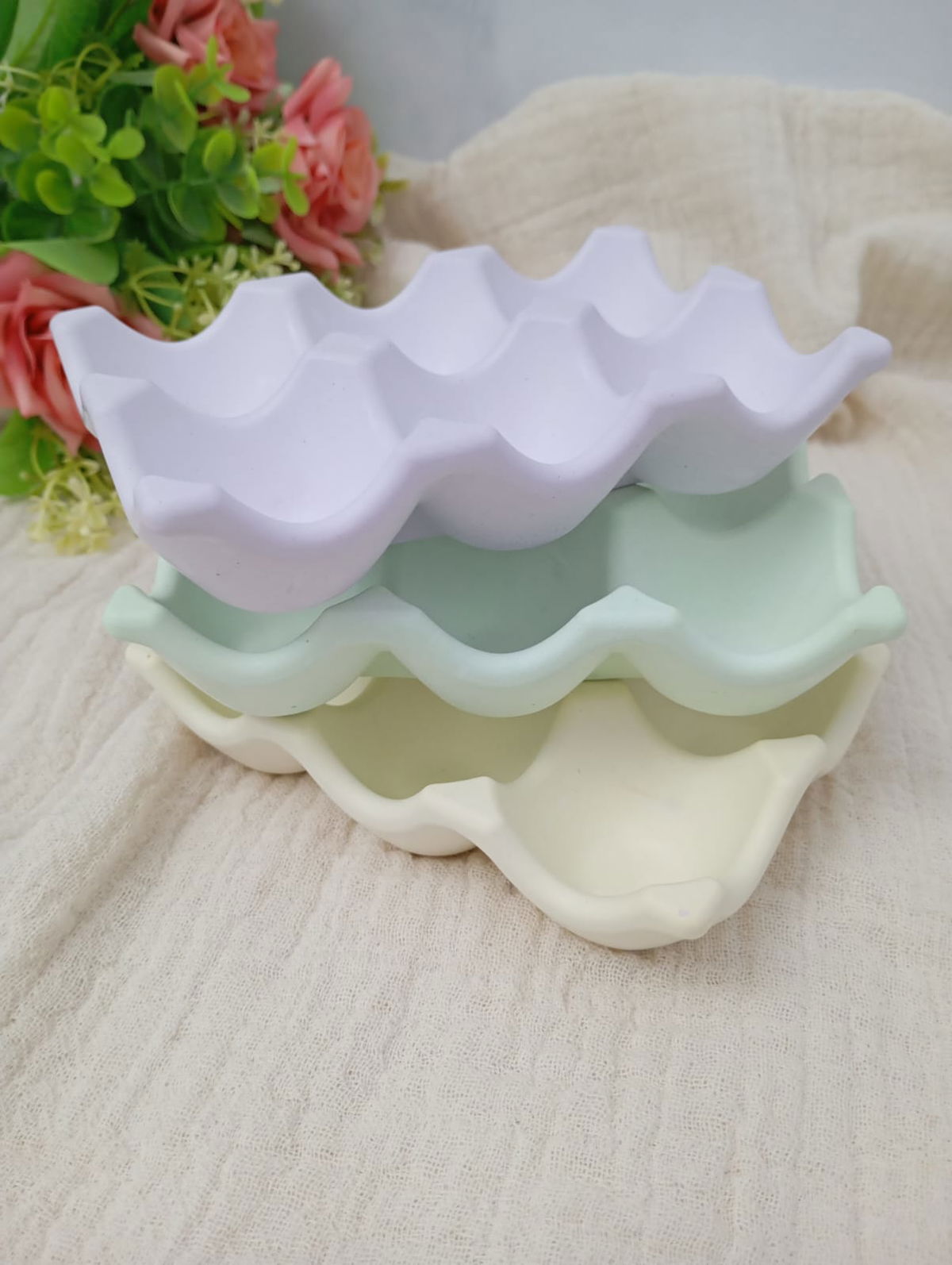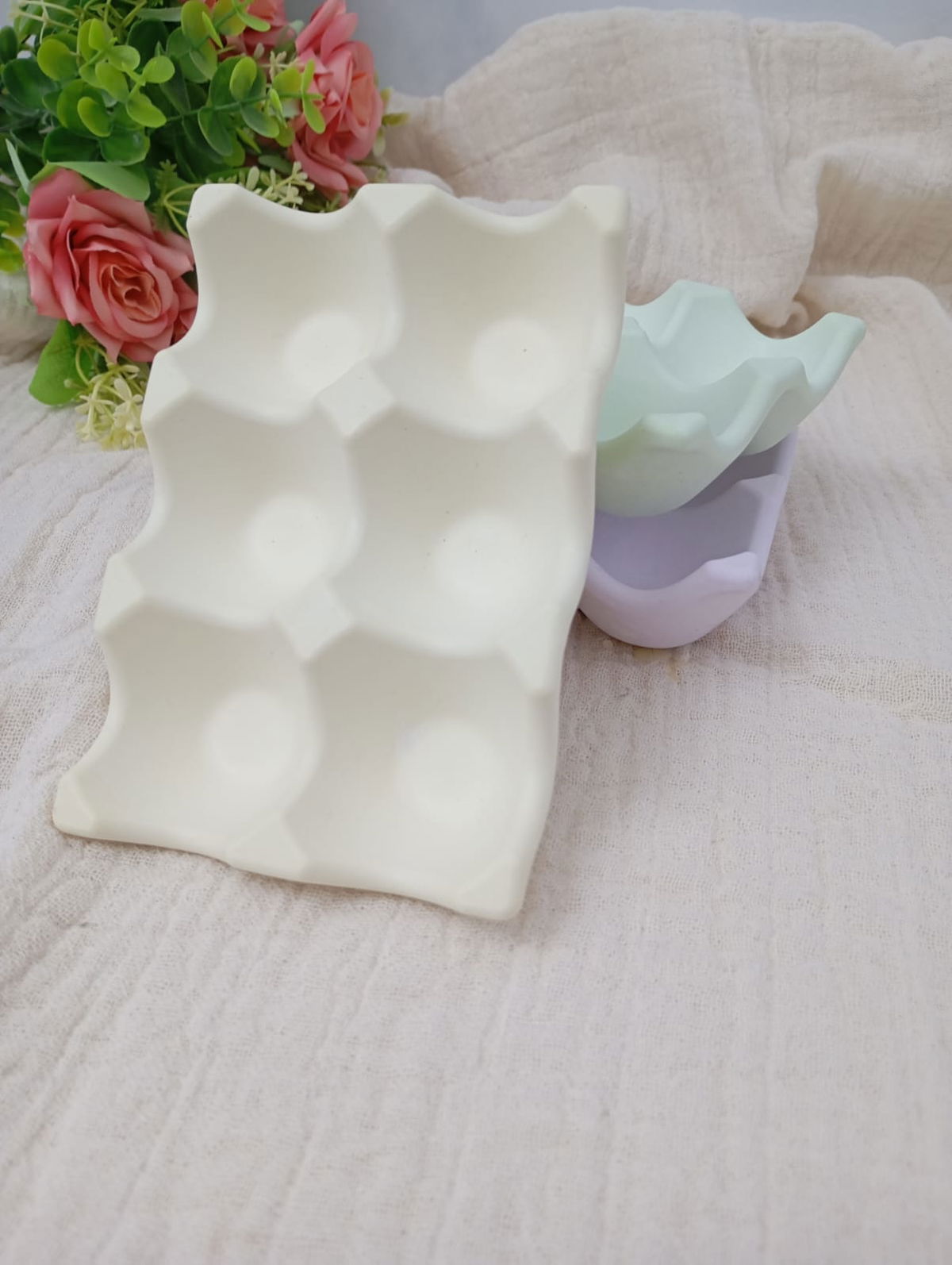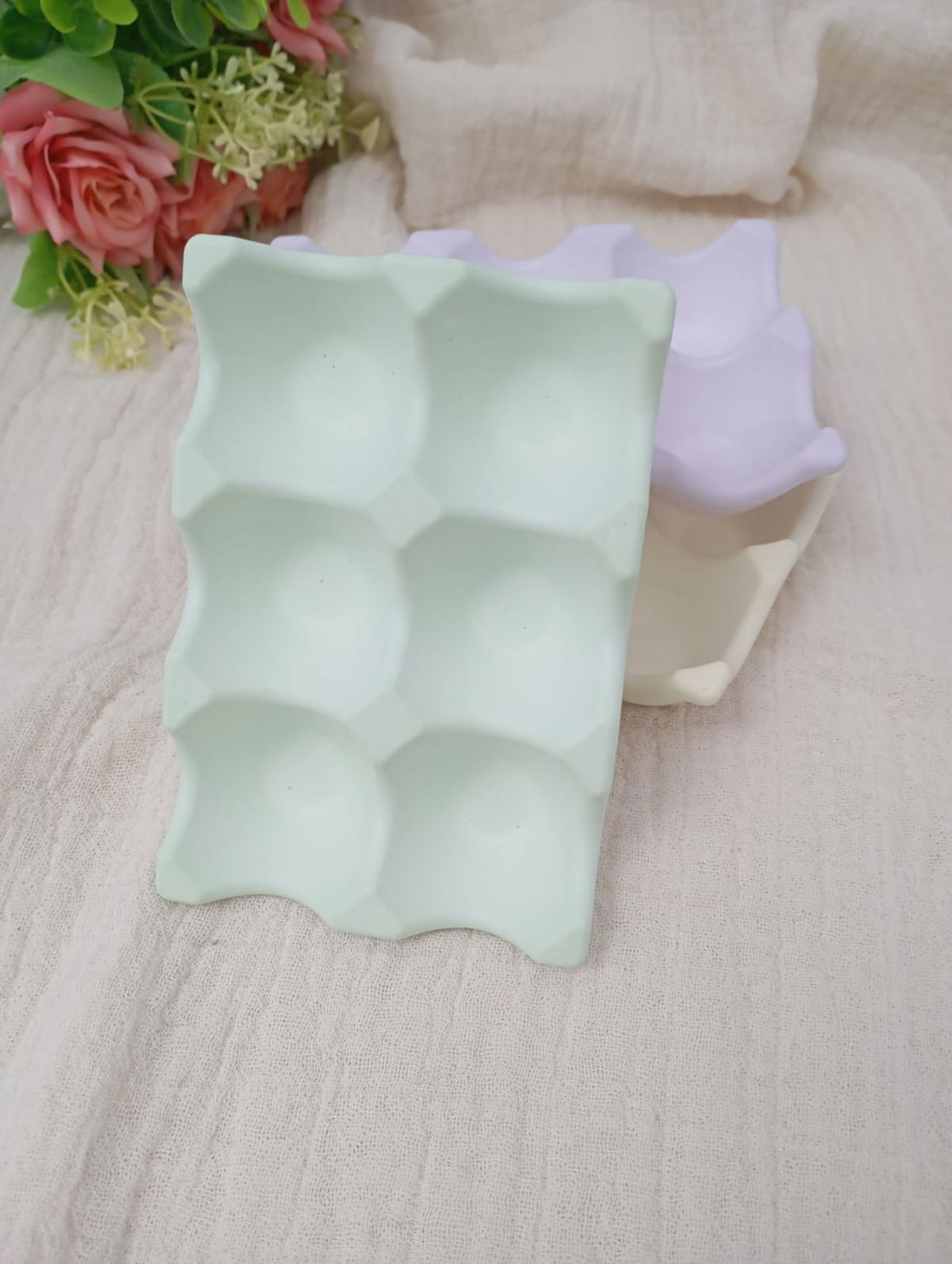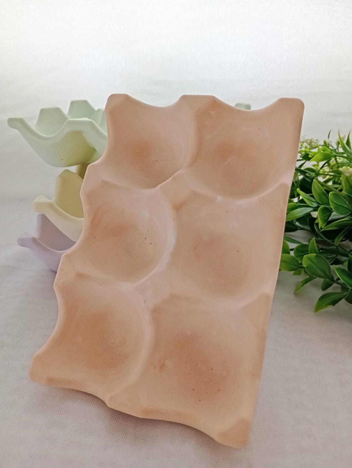 PIEZA ARTESANAL DE RESINA CERAMICA, MODELO HUEVERA DE 6 CAVIDADES, DE 14*10 CM APROX.