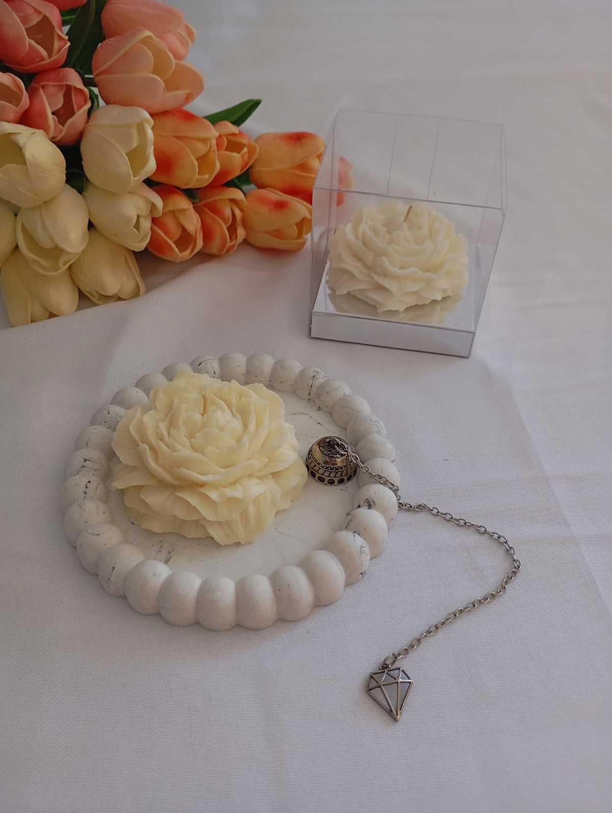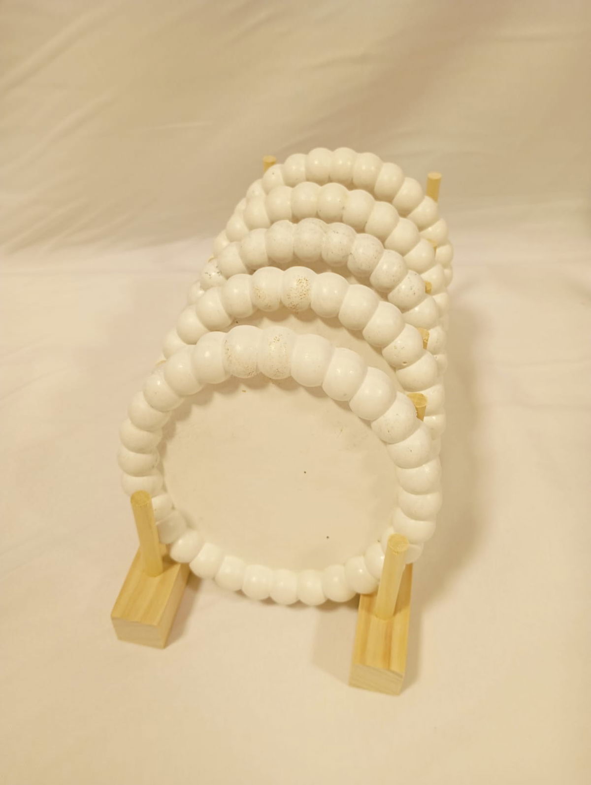 BANDEJA ARTESANAL DECORATIVA DE RESINA CERÁMICA, FORMA CIRCULAR BUBBLE DE 13.5 CM DE DIAMETRO APROX., CON TOPE DE CORCHO EN LA BASE.