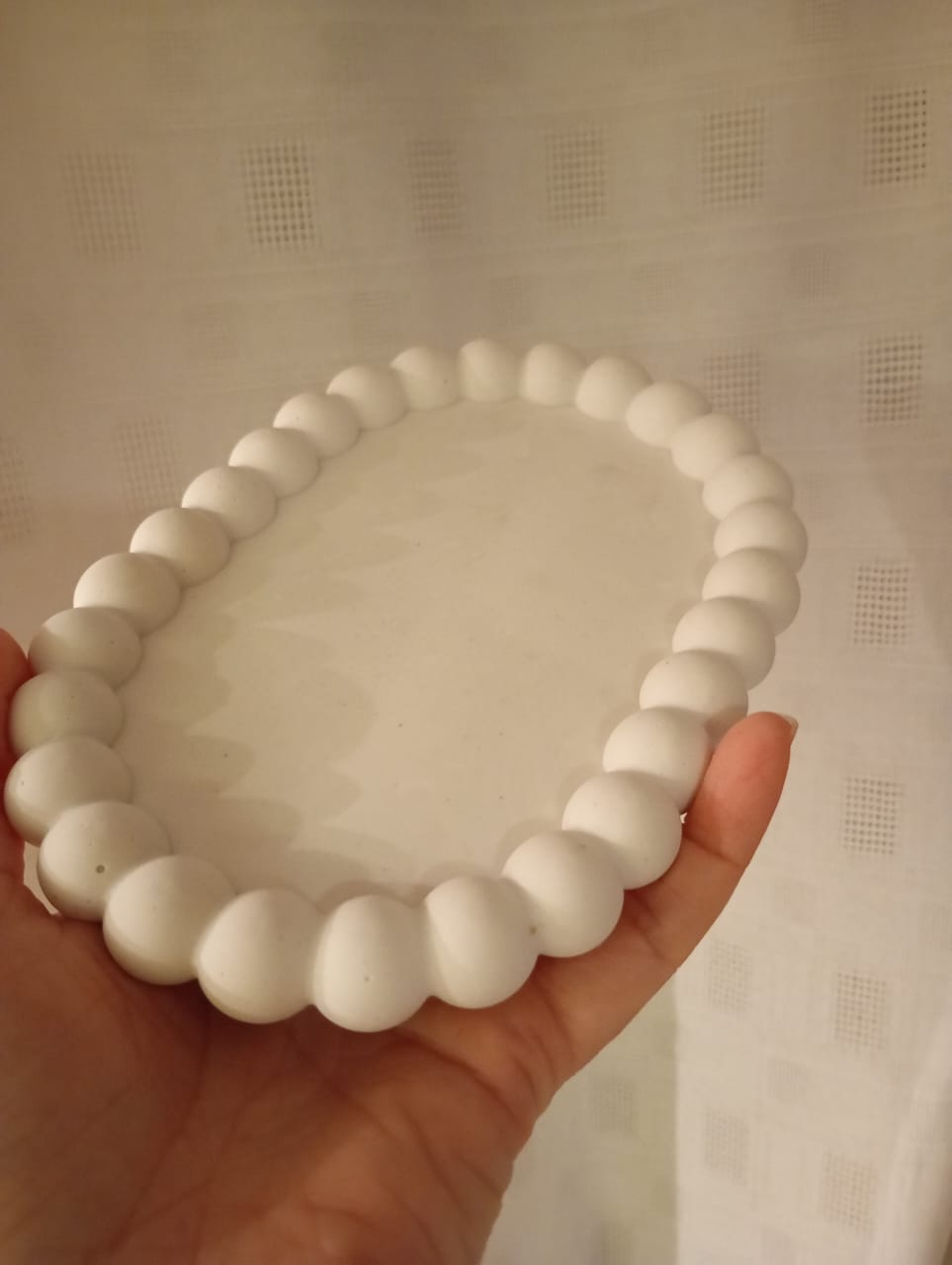 BANDEJA ARTESANAL DECORATIVA DE RESINA CERÁMICA, FORMA OVALADA BUBBLE 17*12 CM APROX., CON TOPE DE CORCHO EN LA BASE.