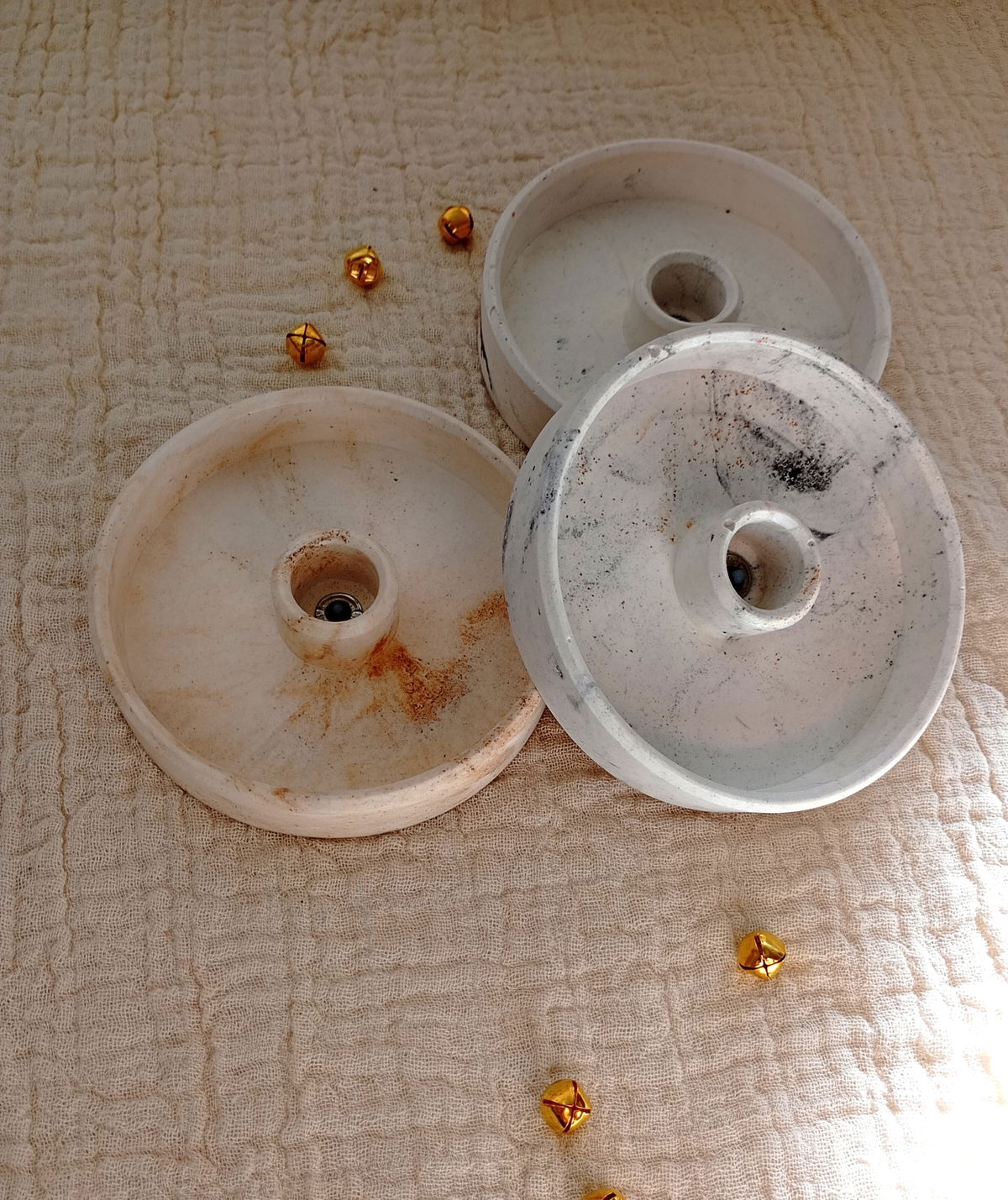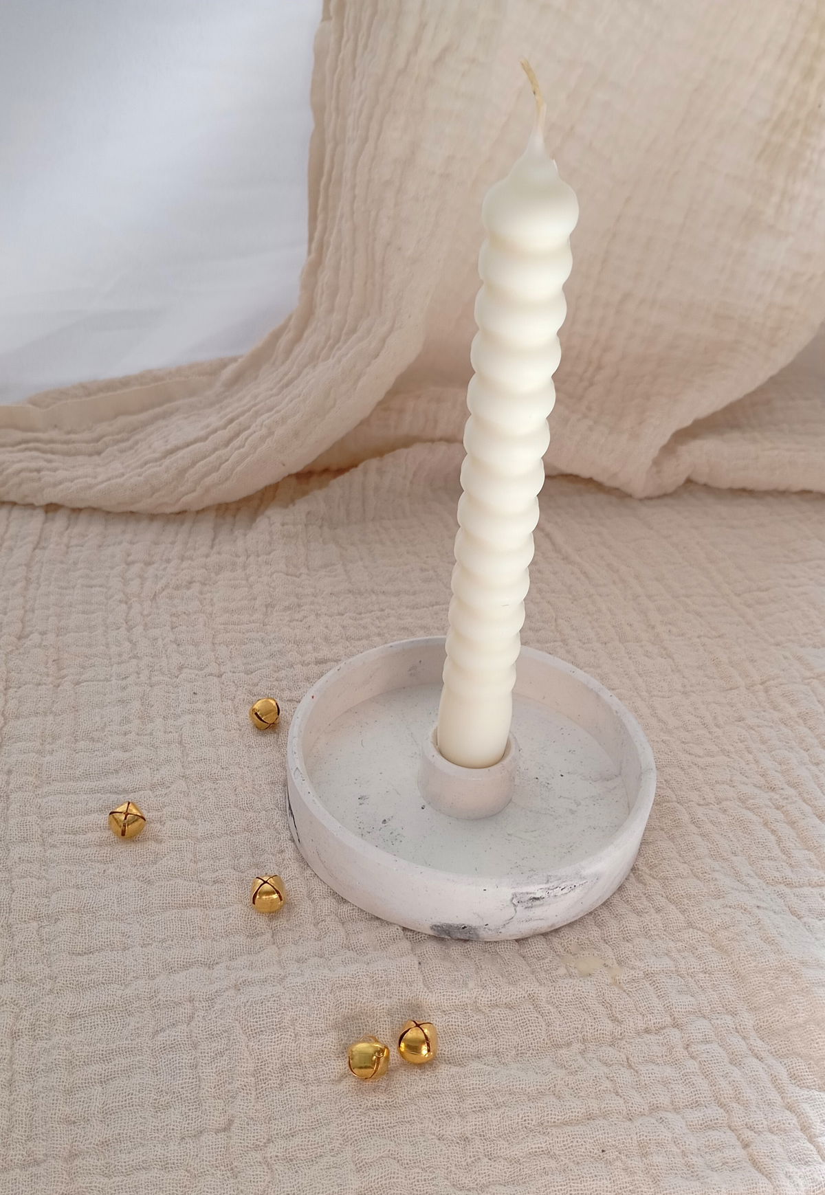CANDELABRO ARTESANAL DE RESINA CERAMICA, MODELO CURCULAR PLATO.