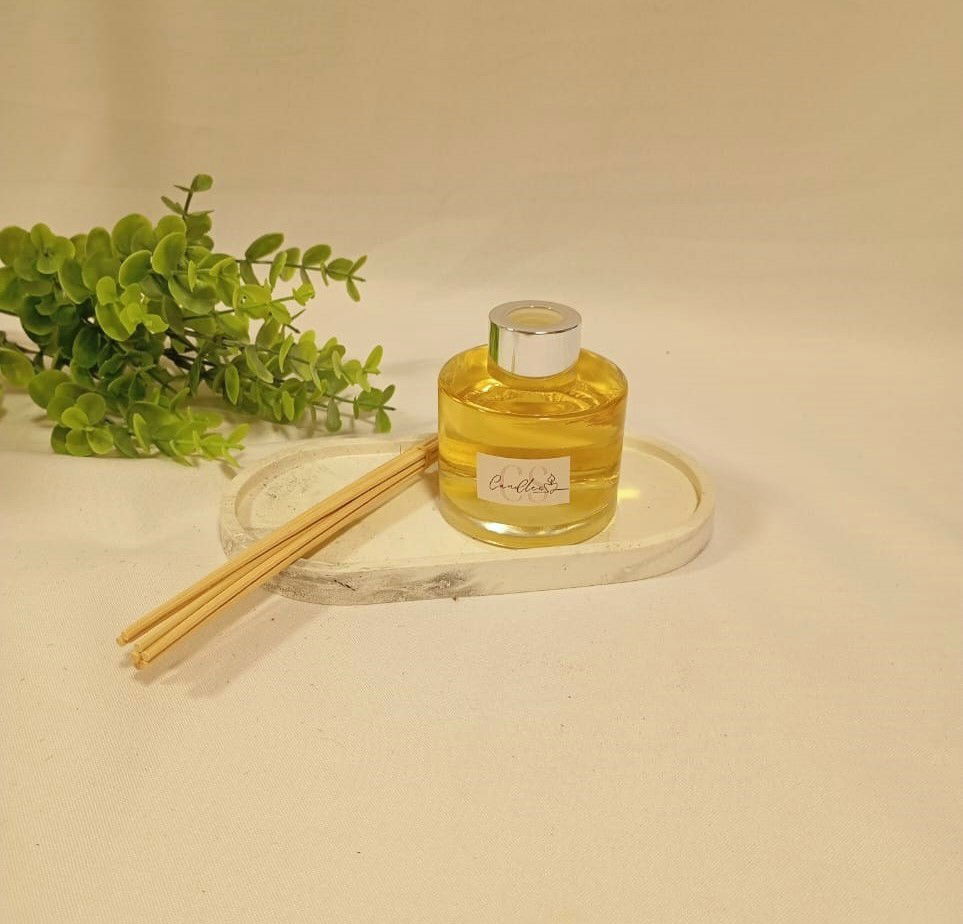 DIFUSOR DE VARILLAS 100 CC EN ENVACE CILINDRICO DE VIDRIO, PRESENTADO EN CAJA DE CARTON. INCLUYE VARILLAS DE RATAN.