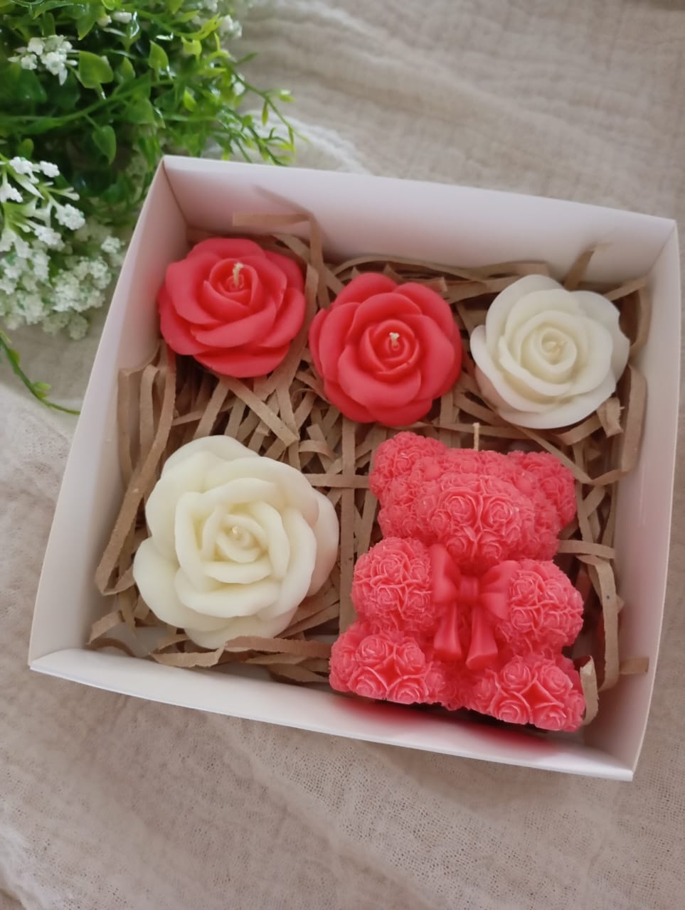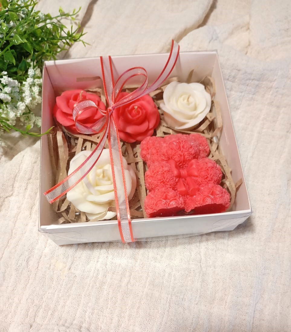 - OSITO, CORAZON Y 3 ROSAS DIFERENTE TAMAÑO.