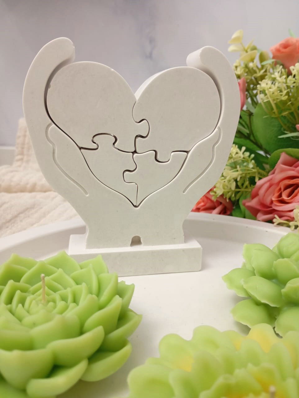 ROMPECABEZAS CORAZON EN MANOS - RESINA CERAMICA