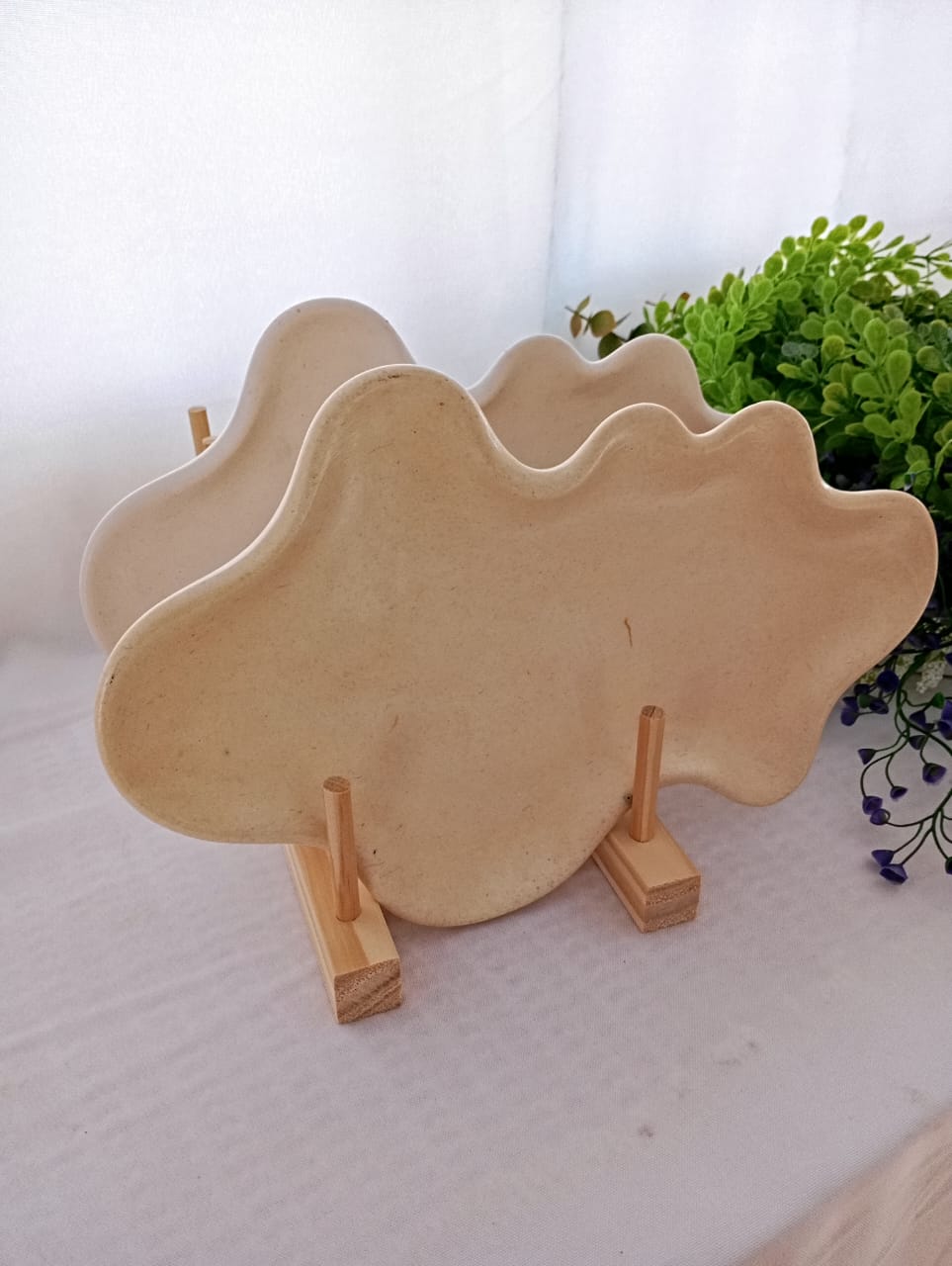 BANDEJA ARTESANAL DECORATIVA DE RESINA CERÁMICA, FORMA IRREGULAR DE 29*18CM APROX, CON TOPES DE CORCHO EN LA BASE. COLOR SEGUN SELECCION. PIEZAS IMPERMEABILIZADAS.