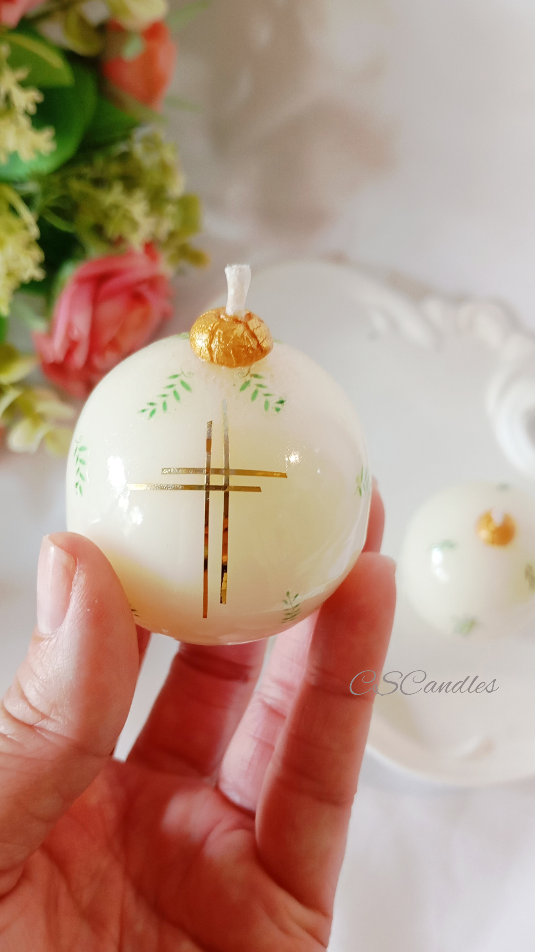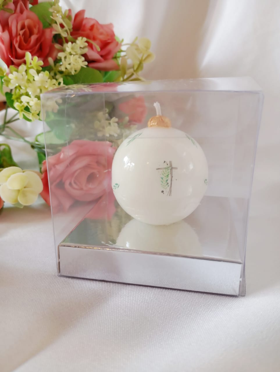 VELA CERAMIC CANDLE, MODELO ESFERA, PARA SOUVENIR COMUNION, BAUTISMO, ETC.