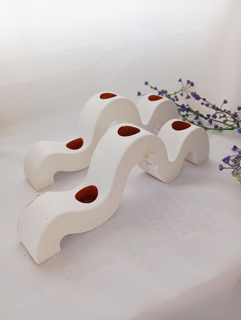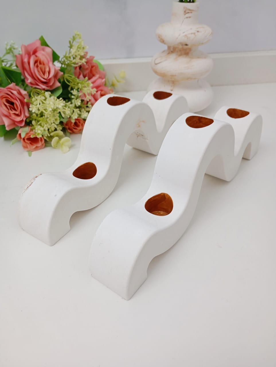 PIEZA ARTESANAL DE RESINA CERAMICA, CANDELABRO TRIPLE EN FORMA DE ONDAS.