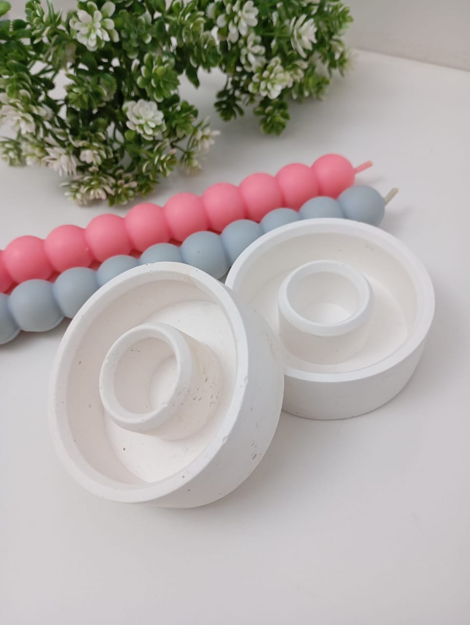 PIEZA ARTESANAL DE RESINA CERAMICA, CANDELABRO FORMA CIRCULAR MEDIANO.
