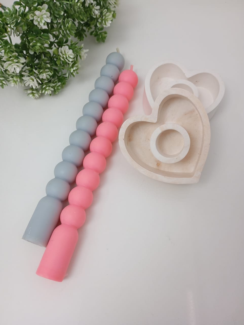 PIEZA ARTESANAL DE RESINA CERAMICA, CANDELABRO FORMA DE CORAZON.