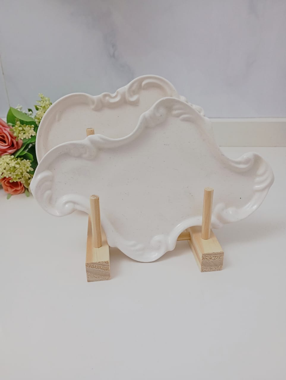 BANDEJA ARTESANAL DE RESINA CERAMICA, MODELO VINTAGE ANGOSTA, DE 22.5*15 CM APROX, CON TOPE DE CORCHO EN LA BASE.