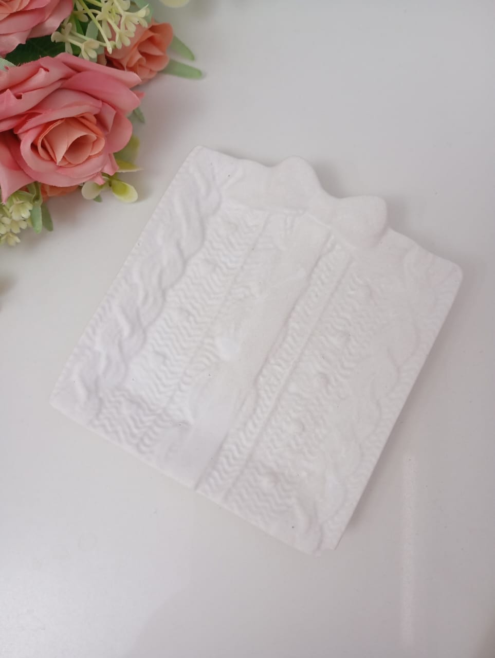 BANDEJA ARTESANAL DE RESINA CERAMICA, MODELO MOÑO TRENZAS, DE 12*11 CM APROX.