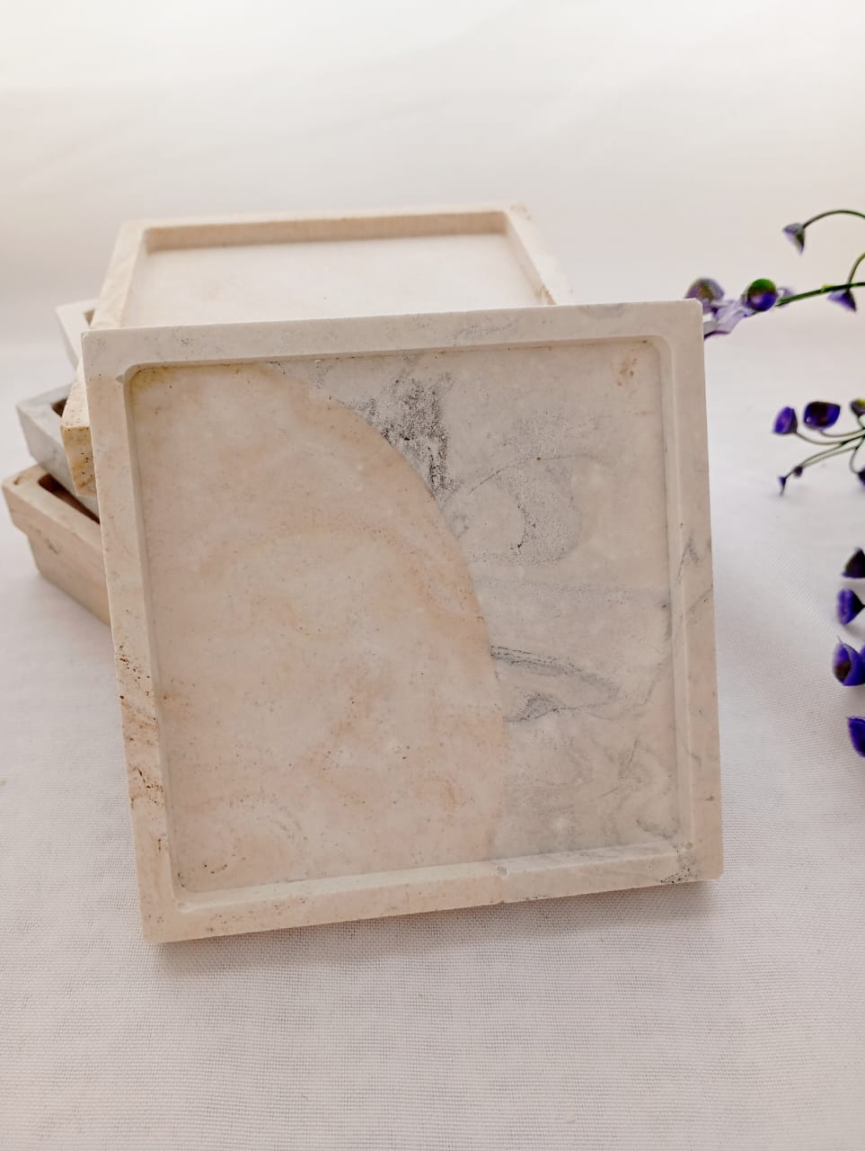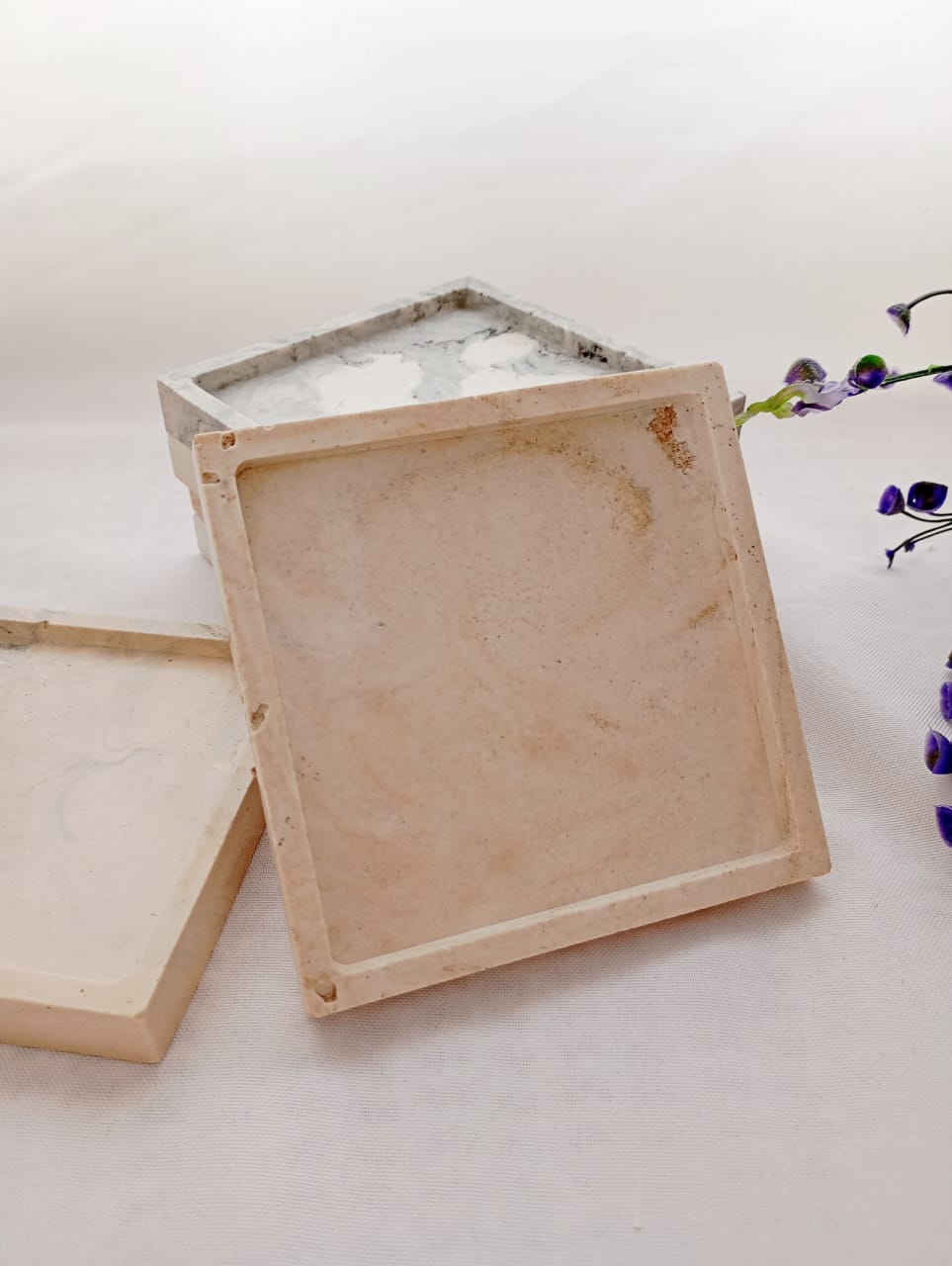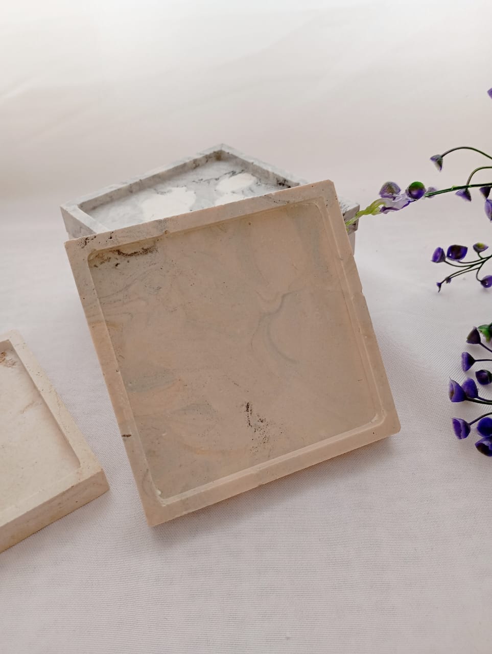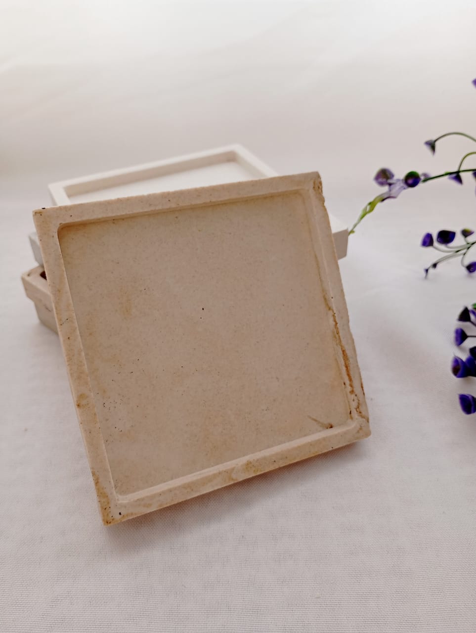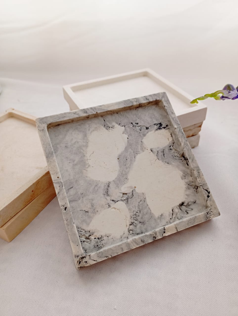 BANDEJA ARTESANAL DE RESINA CERAMICA, MODELO CUADRADA DE 10*10 CM APROX.
