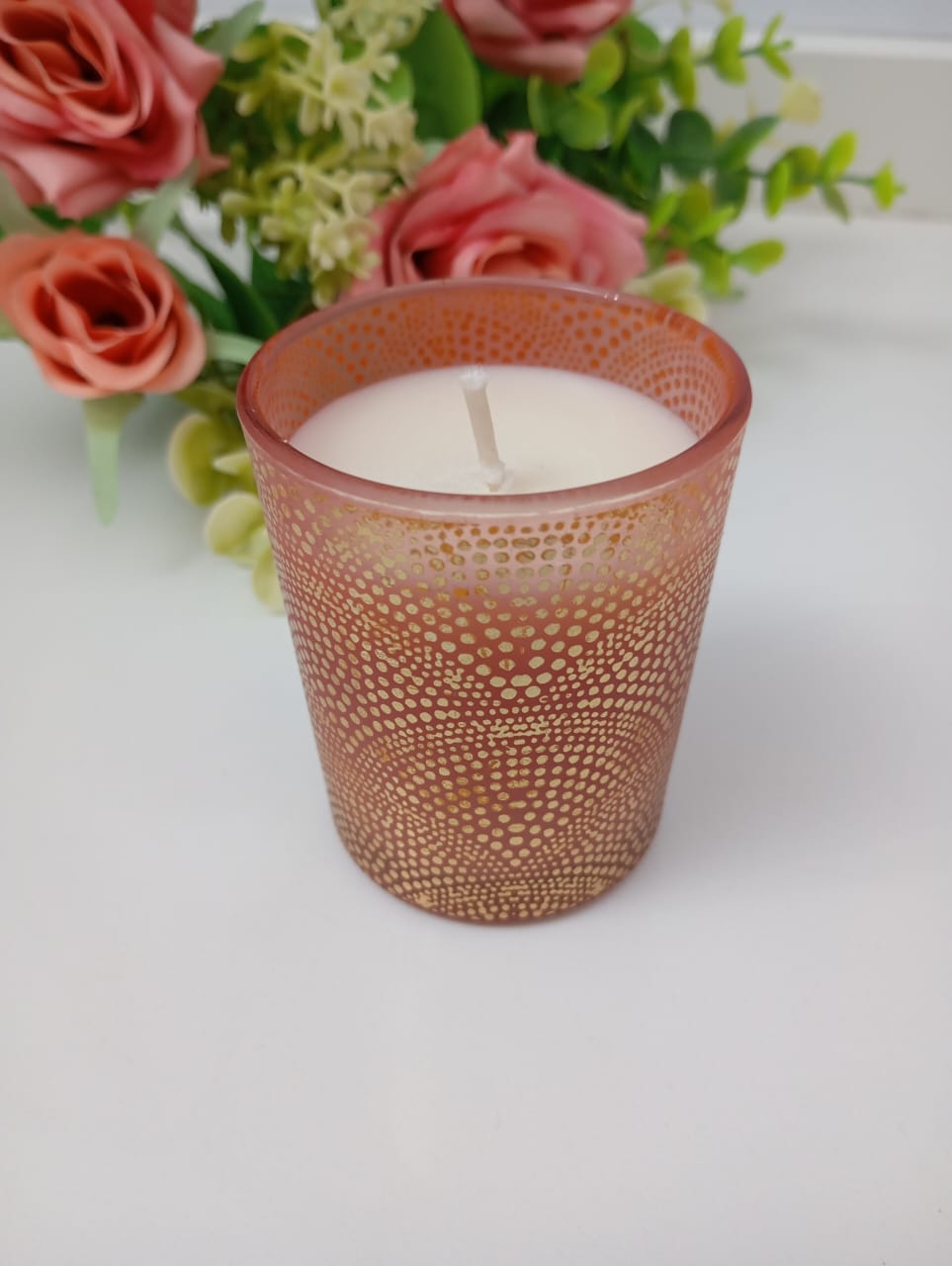 VELA AROMATICA DE CERA DE SOJA, MODELO VASITOS COLOR.