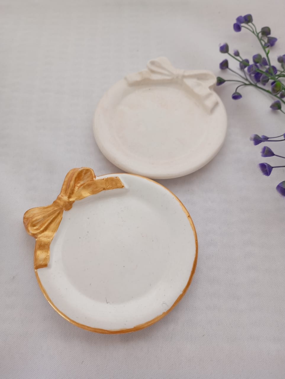BANDEJA / POSAVASO ARTESANAL DE RESINA CERAMICA, MODELO CIRCULAR MOÑO DE 10 CM APROX.