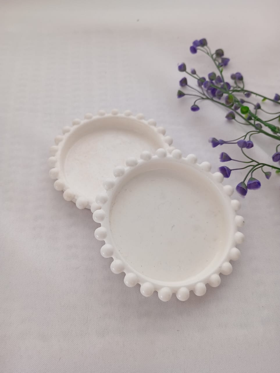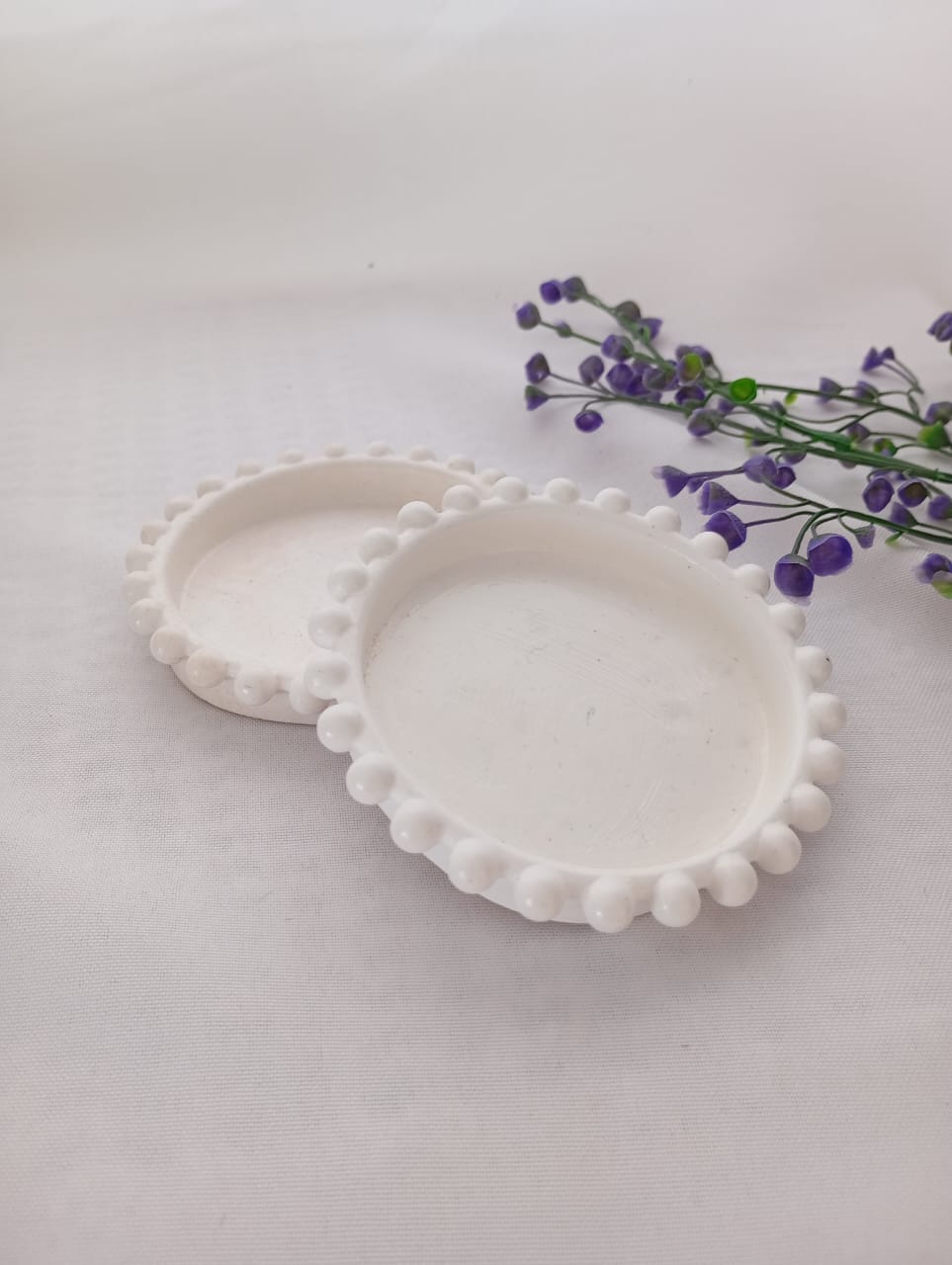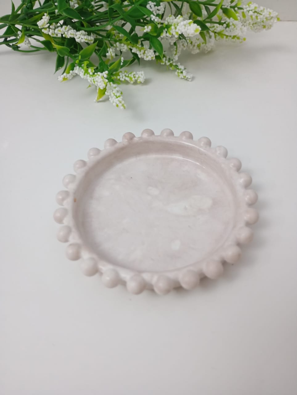 BANDEJA / POSAVASO ARTESANAL DE RESINA CERAMICA, MODELOCIRCULAR PERLITAS DE 9 CM APROX.