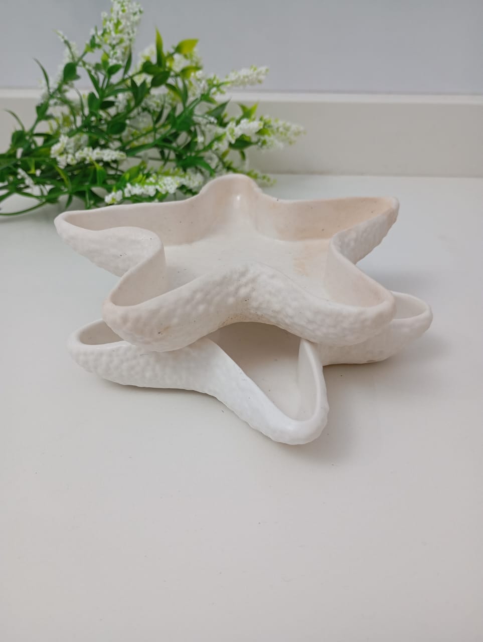 CUENCO ARTESANAL DE RESINA CERAMICA, MODELO ESTRELLA DE MAR, DE 13CM DIAMETRO POR 2CM ALTO APROX.
