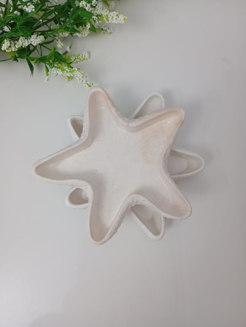 CUENCO ARTESANAL DE RESINA CERAMICA, MODELO ESTRELLA DE MAR, DE 13CM DIAMETRO POR 2CM ALTO APROX.