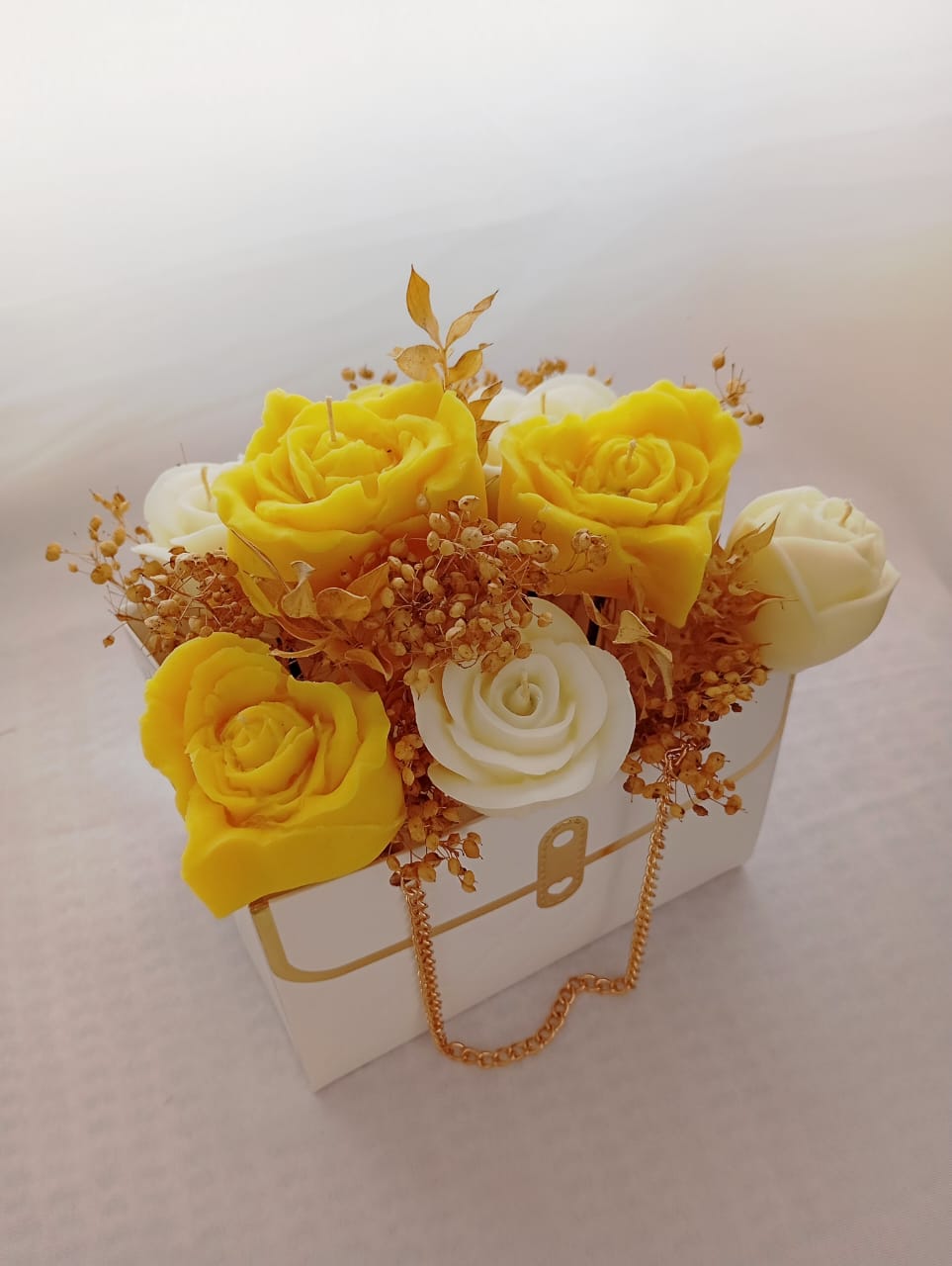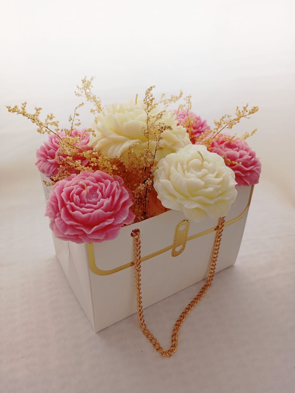 ARREGLO FLORAL EN CAJA PORMA DE CARTERA, 2 PRESENTACIONES: