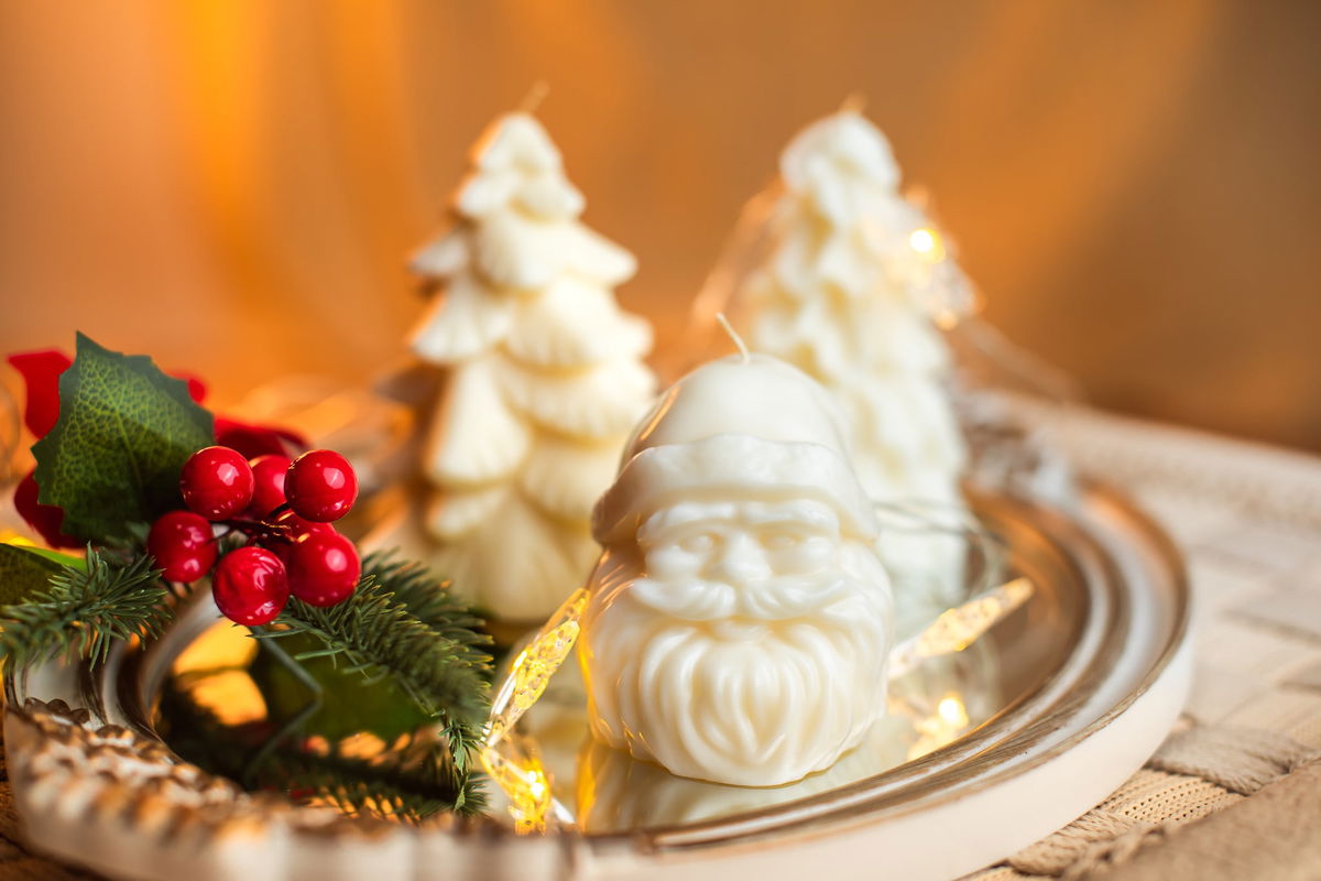 VELA DE CERA DE SOJA, MODELO CARA DE PAPA NOEL, DE 165 GS.