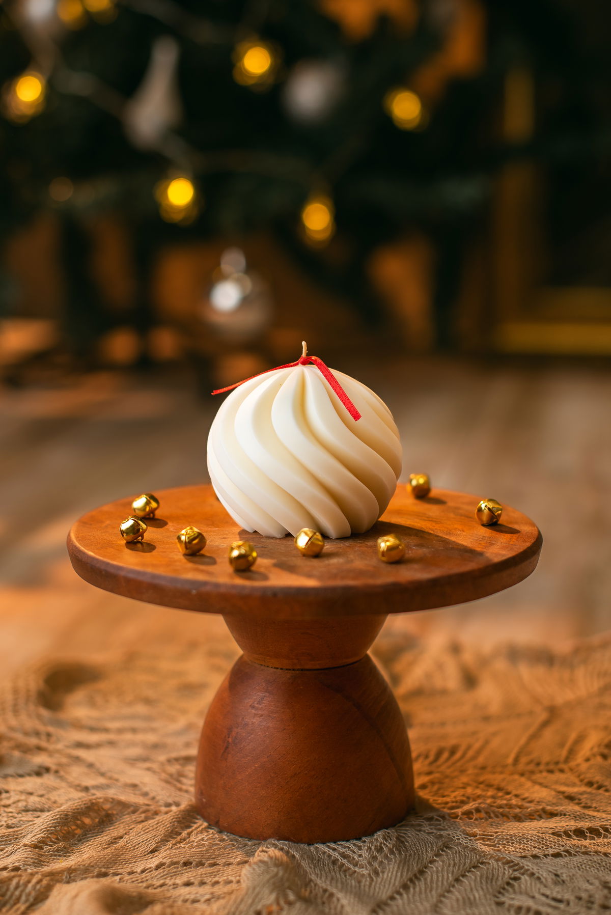 VELA AROMATICA DE CERA DE SOJA, MODELO ESFERA TORNEADA XL.