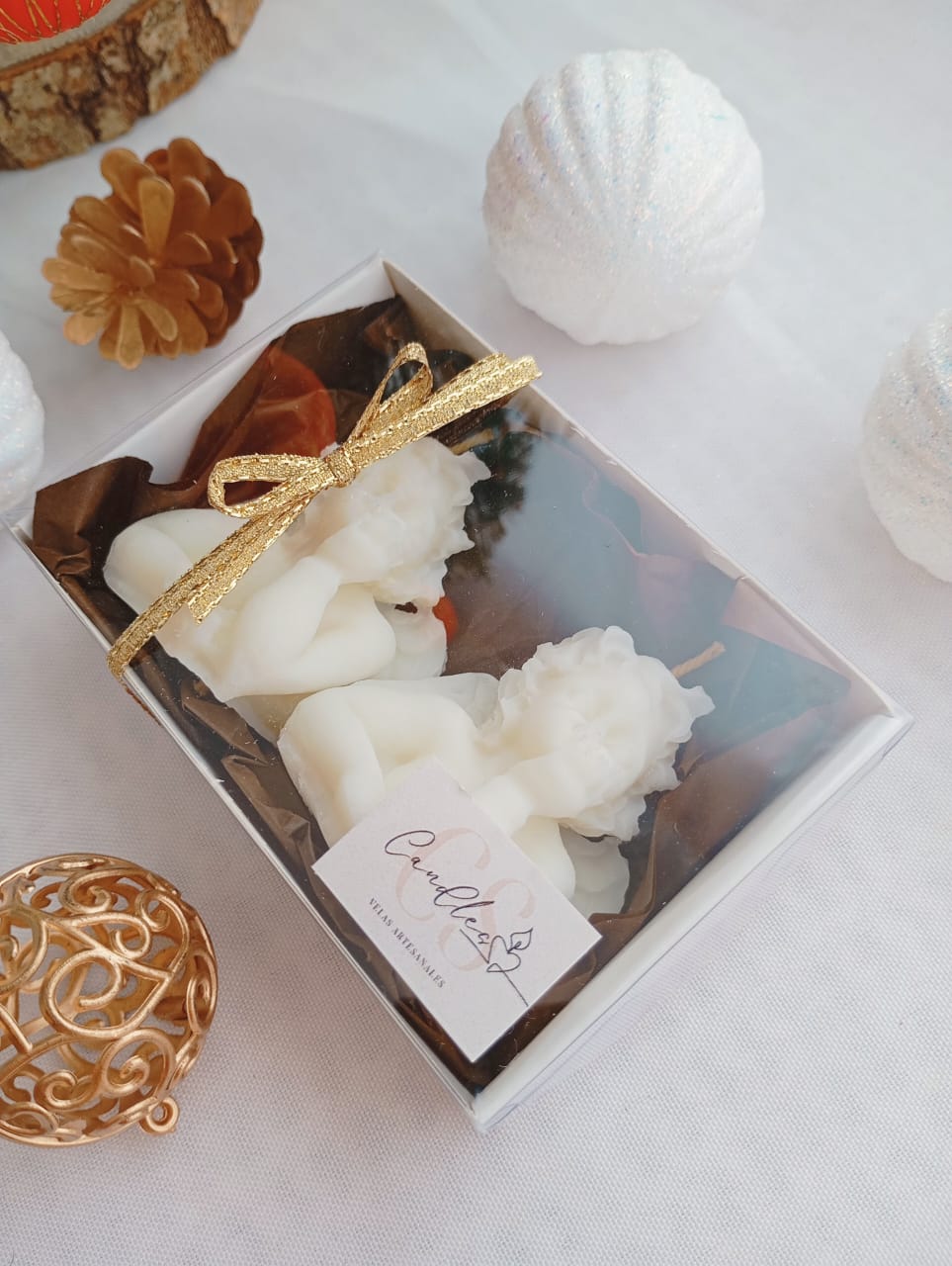 VELAS AROMATICAS DE CERA DE SOJA, MODELO ANGELITOS.