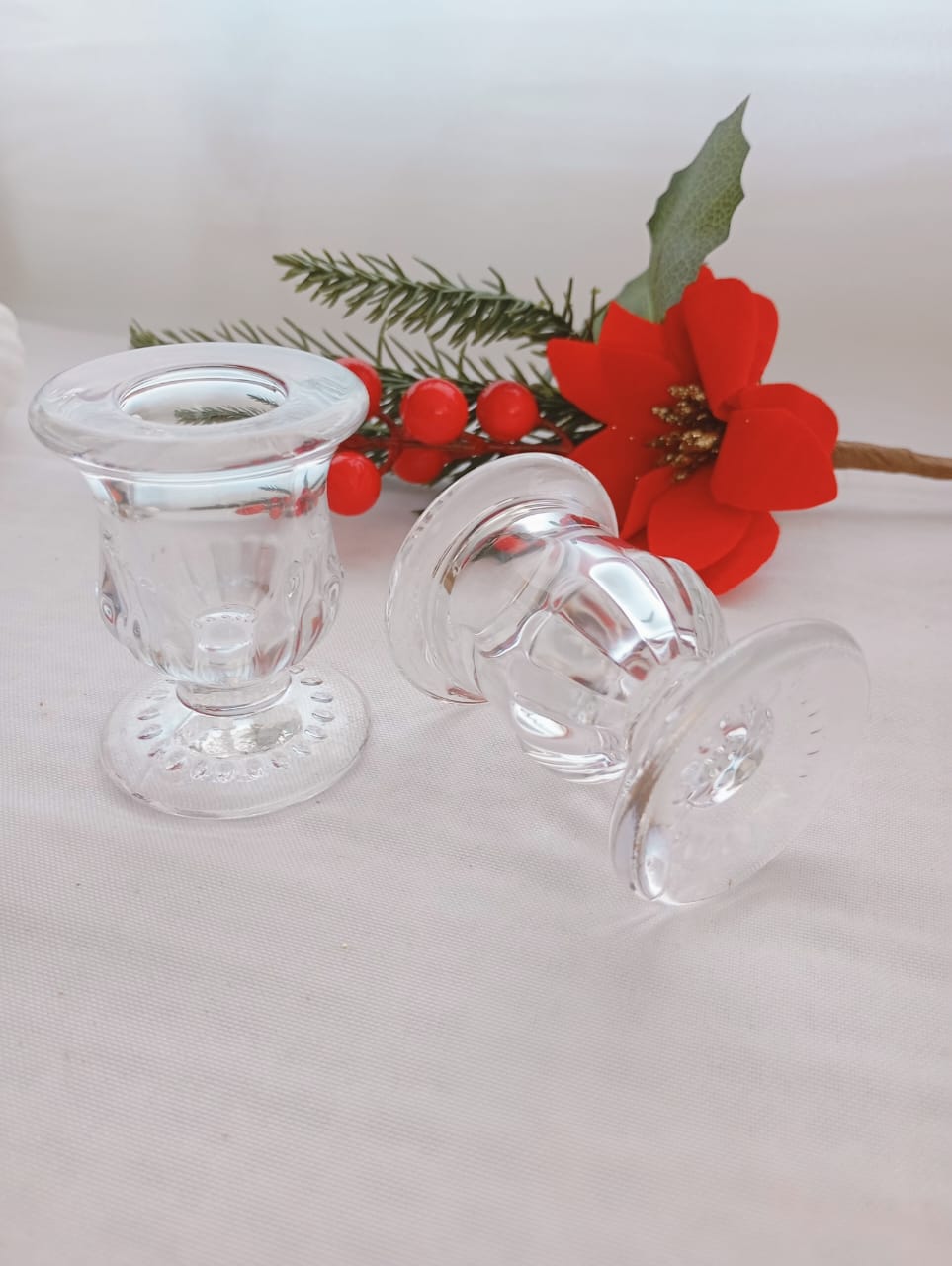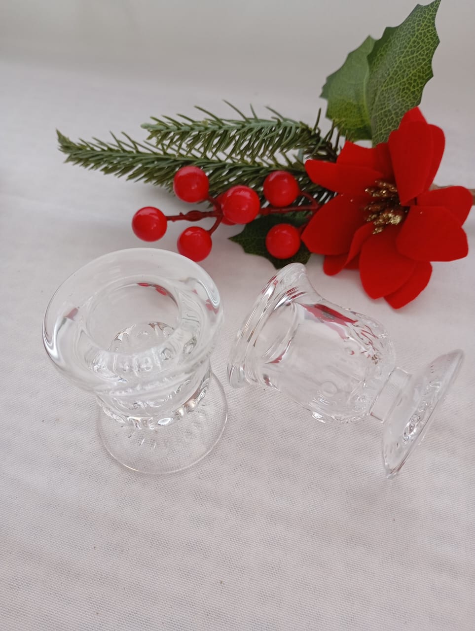 CANDELABRO BAJO DE VIDRIO TRANSPARENTE.