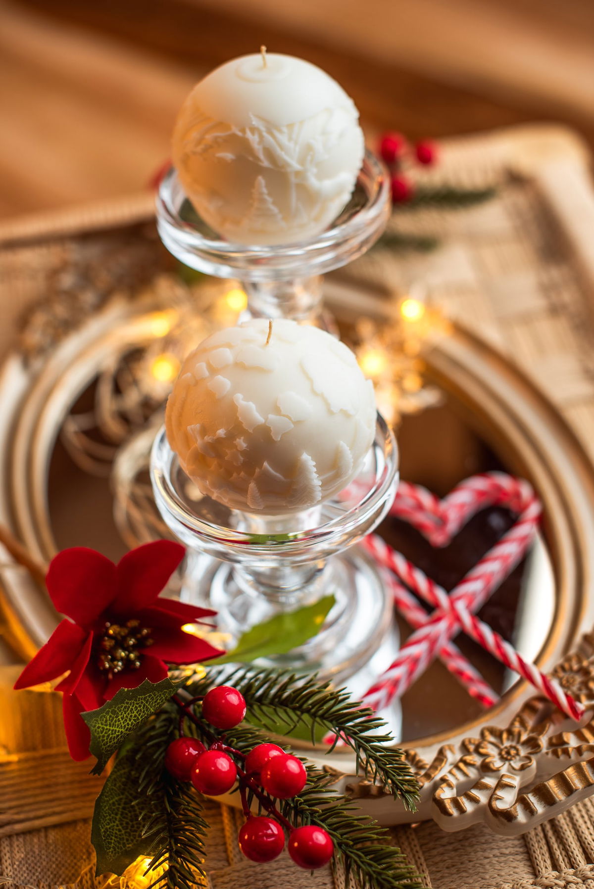VELA AROMATICA DE CERA DE SOJA, MODELO ESFERA TALLADA RENO 1 (MAS AL FRENTE EN LA IMAGEN), DE CM APROX. COLOR BLANCO NATURAL DE LA CERA