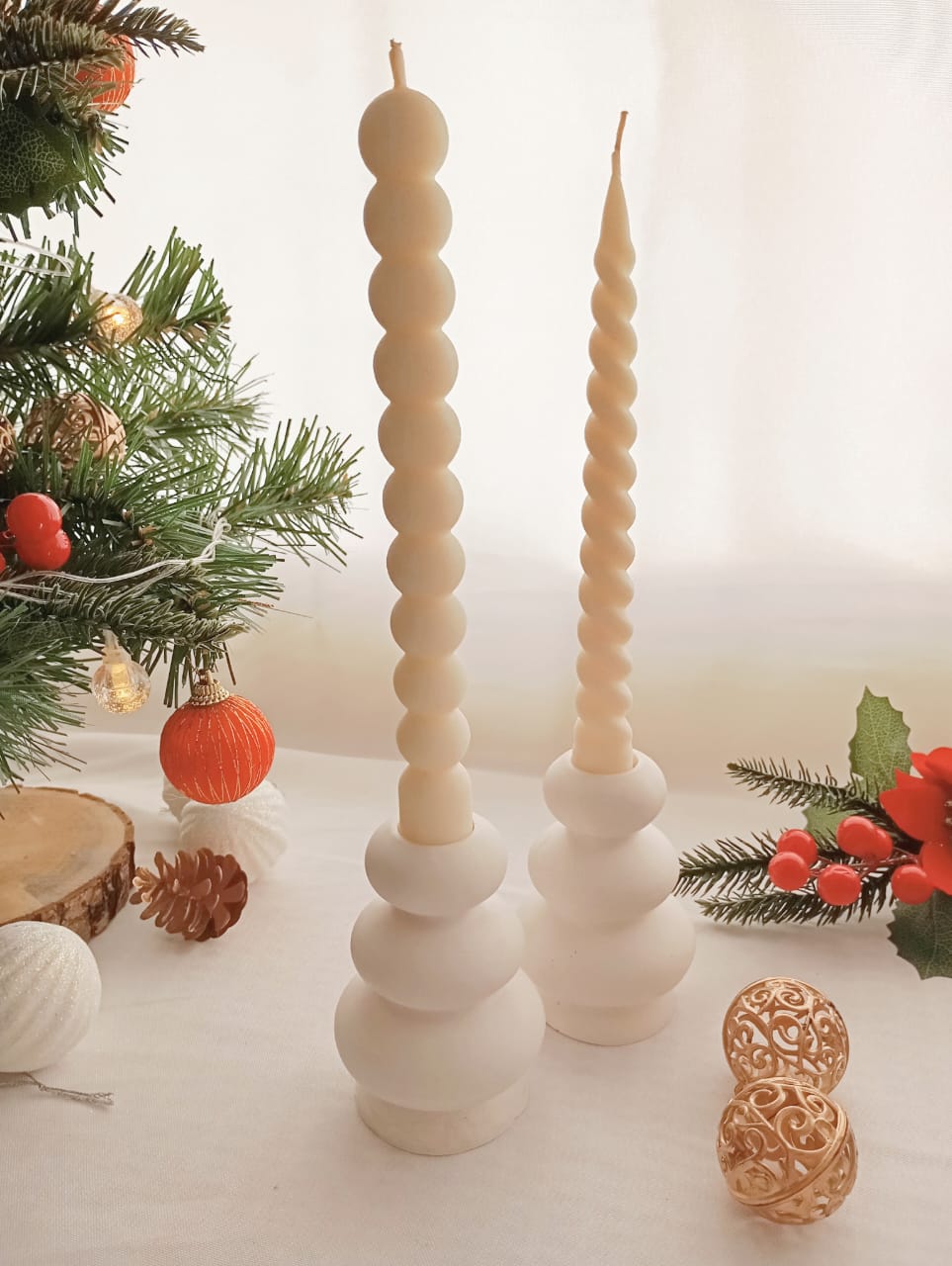 PIEZA ARTESANAL DE RESINA CERAMICA, CANDELABRO ANILLOS DE 9CM DE ALTO POR 6CM DE DIAMETRO EN SU BASE APROX.