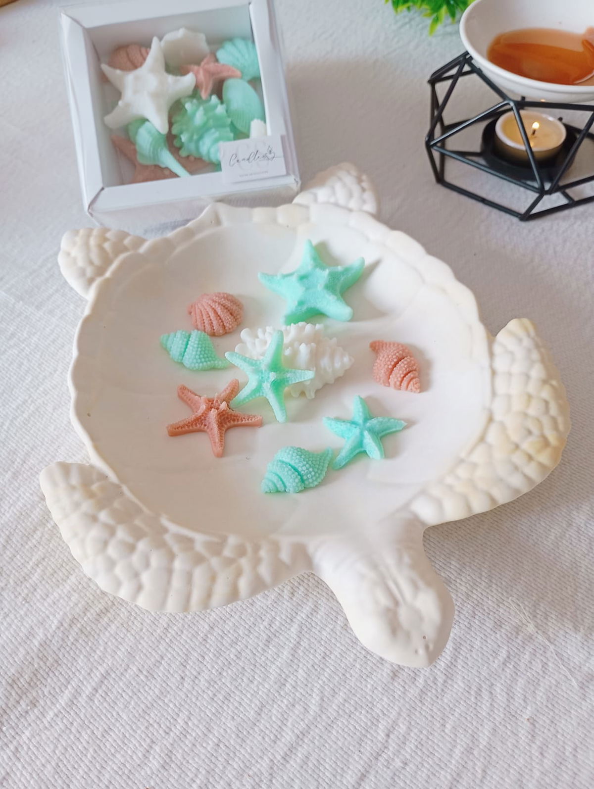 BANDEJA ARTESANAL DE RESINA CERAMICA, MODELO TORTUGA MARINA, DE 23*20 CM APROX.