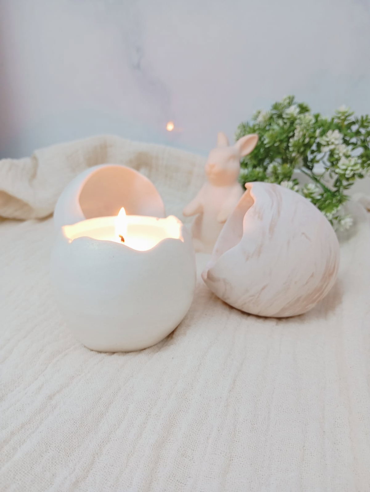 VELA AROMATICA DE CERA DE SOJA, EN PIEZA ARTESANAL DE RESINA CERAMICA -HUEVO M.