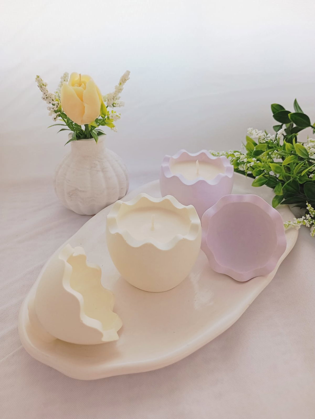 VELA AROMATICA DE CERA DE SOJA, EN PIEZA ARTESANAL DE RESINA CERAMICA -HUEVO P.