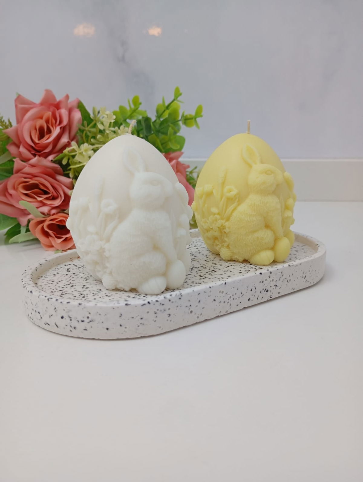 VELA AROMATICA DE CERA DE SOJA, MODELO HUEVO CON CONEJO.