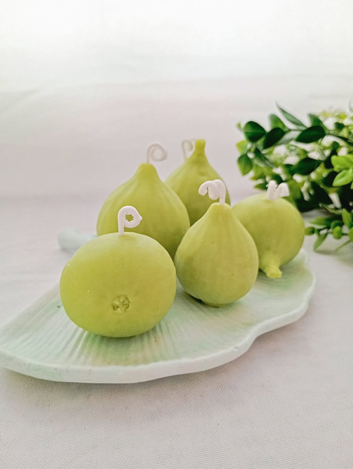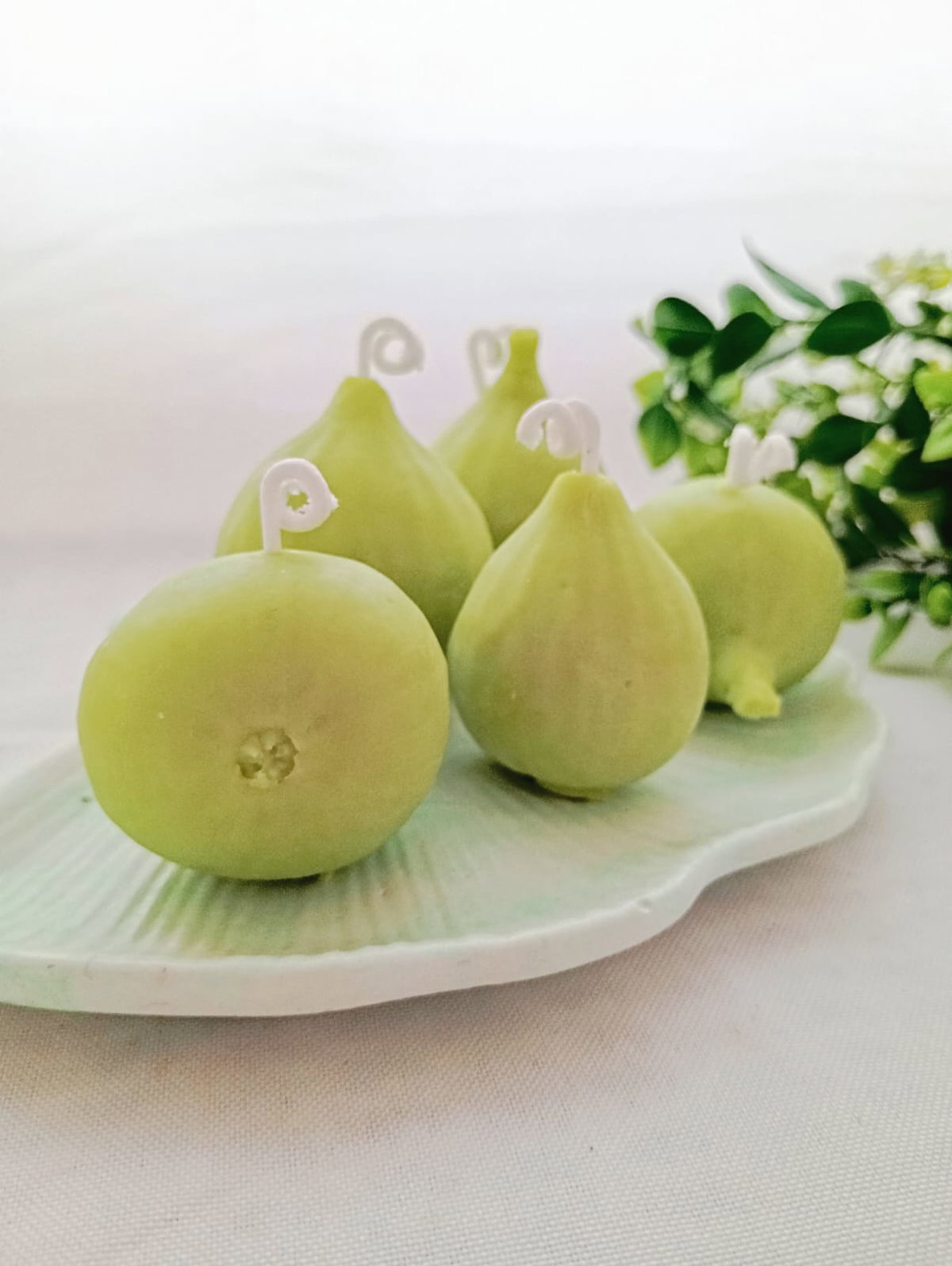 VELAS AROMATICAS DE CERA DE SOJA, MODELO HIGOS VARIOS TAMAÑOS SURTIDO, CAJA POR 5 UNIDADES, AROMA HIGOS AZUCARADOS.